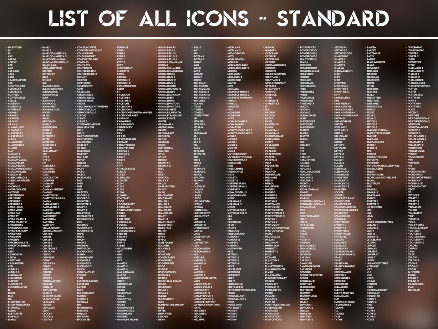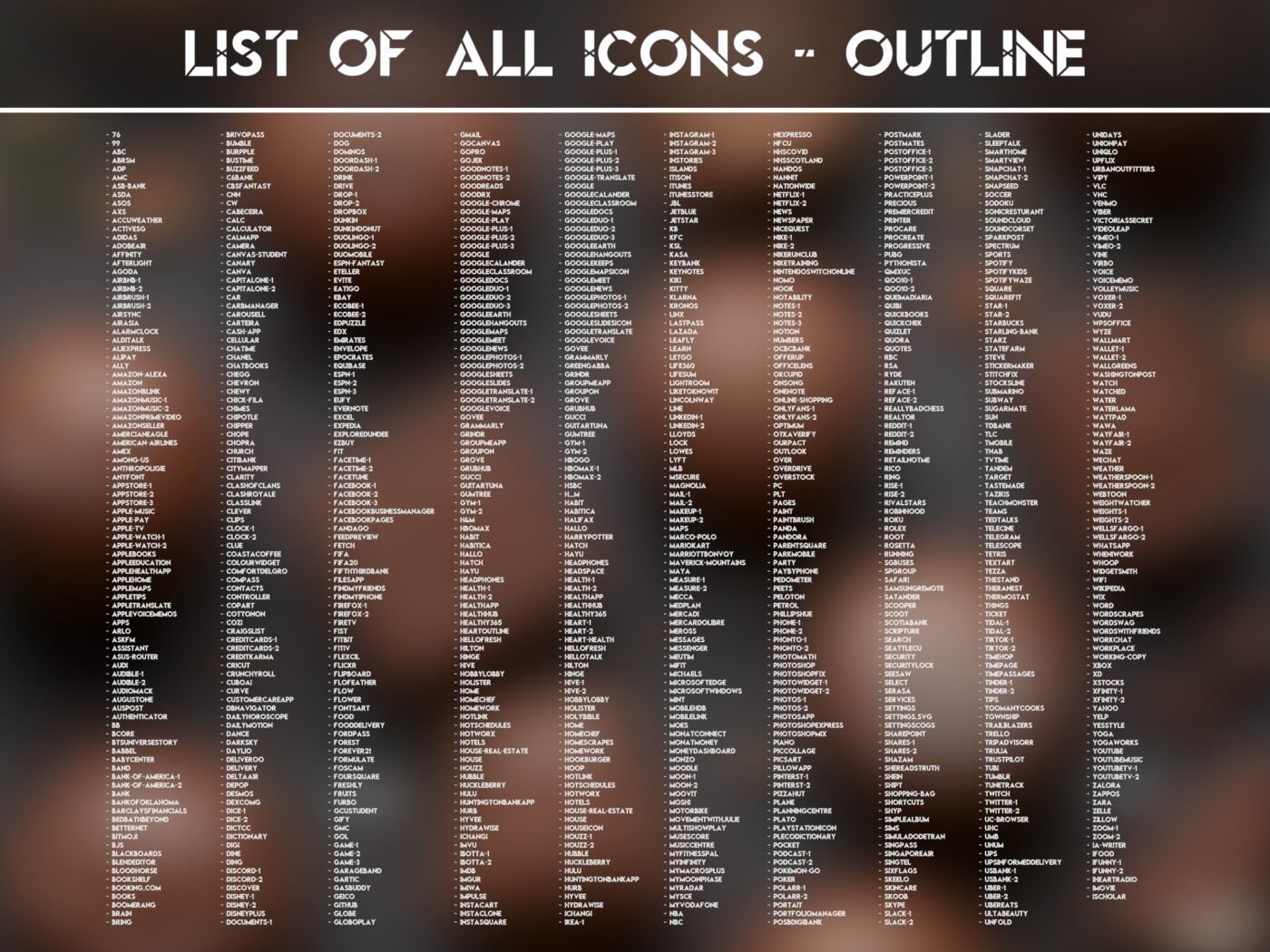 These include each a regular and an outline version. The lists with the available icons can be found in the pictures. You can customize the appearance of your device as shown and create your own unique patterns and designs!