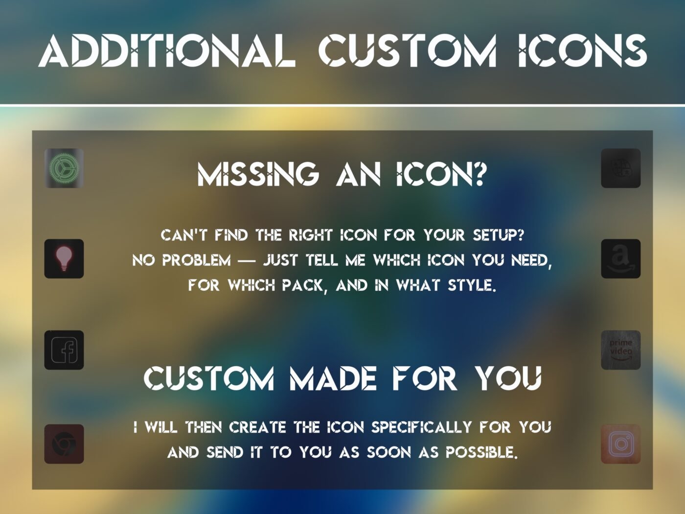 Instructions for changing the original icons are included. Without any prior experience in the setup process, it typically takes around 10 to 15 minutes for the first time. In addition, a link and password are provided for each pack in the scope of delivery. The icons can then be easily downloaded completely or by selection from Dropbox. All you need is the free and in most cases preinstalled app “shortcuts” from Apple. The product is therefore compatible with all iPhones and iPads.