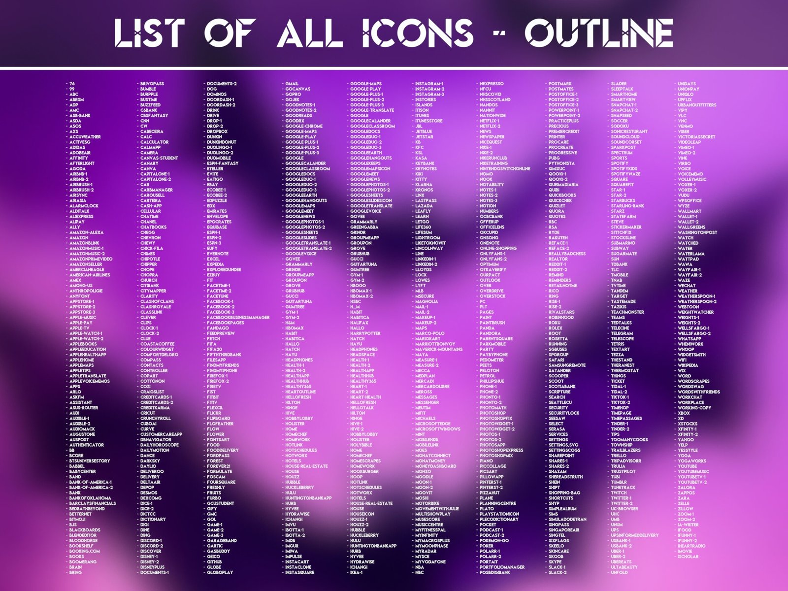 These include each a regular and an outline version. The lists with the available icons can be found in the pictures. You can customize the appearance of your device as shown and create your own