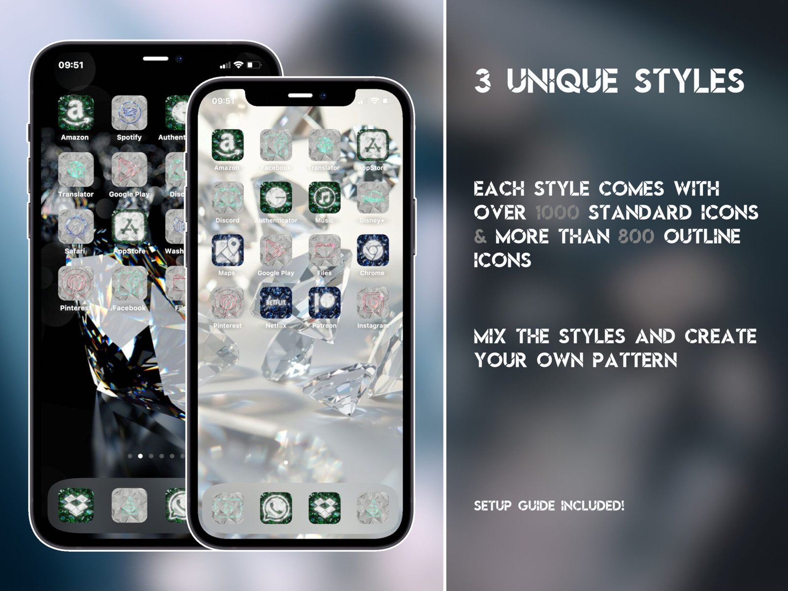 Hi there! This is an icon pack for iPhone and iPad themed around precious gemstones like diamonds. Let your icons shine with the brilliance of emerald, ruby, and sapphire!
