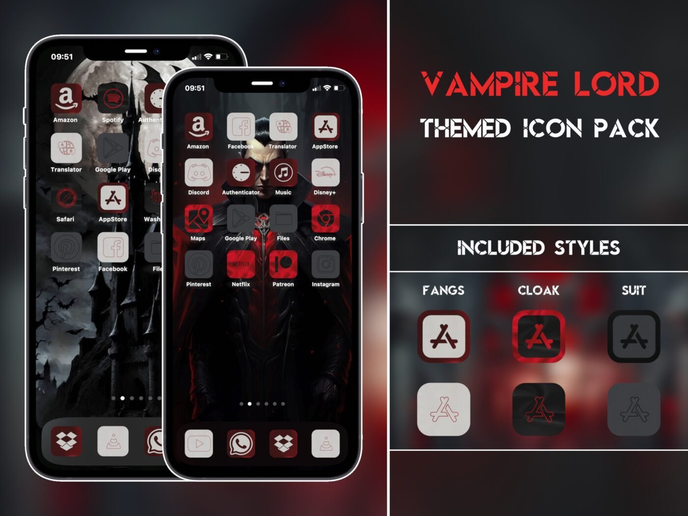 Hi there! This is an icon bundle for iPhone and iPad that includes three packs: The Vampire, The Magical Witch and The Haunted Castle Themed Icon Pack. When you purchase this bundle, you get three icon packs for the price of two. Each pack contains almost 6,000 icons in total across three unique styles!