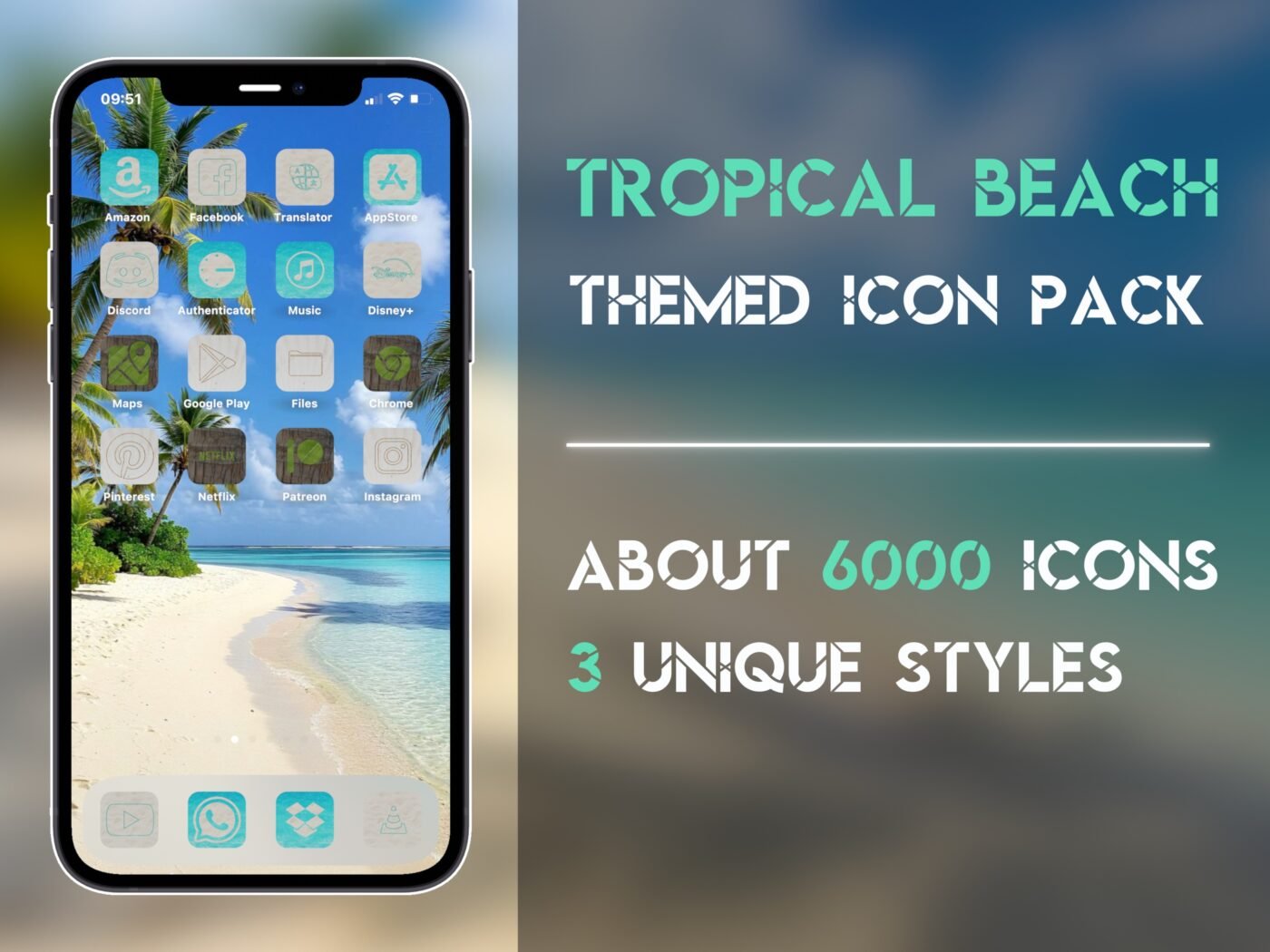 Hi there! This is an icon pack for iPhone and iPad themed around Tropical Beaches. Relax your style with a little tropical escape – these sunshine-soaked icons bring the beach right to you. It contains almost 6,000 icons in total across three unique styles!