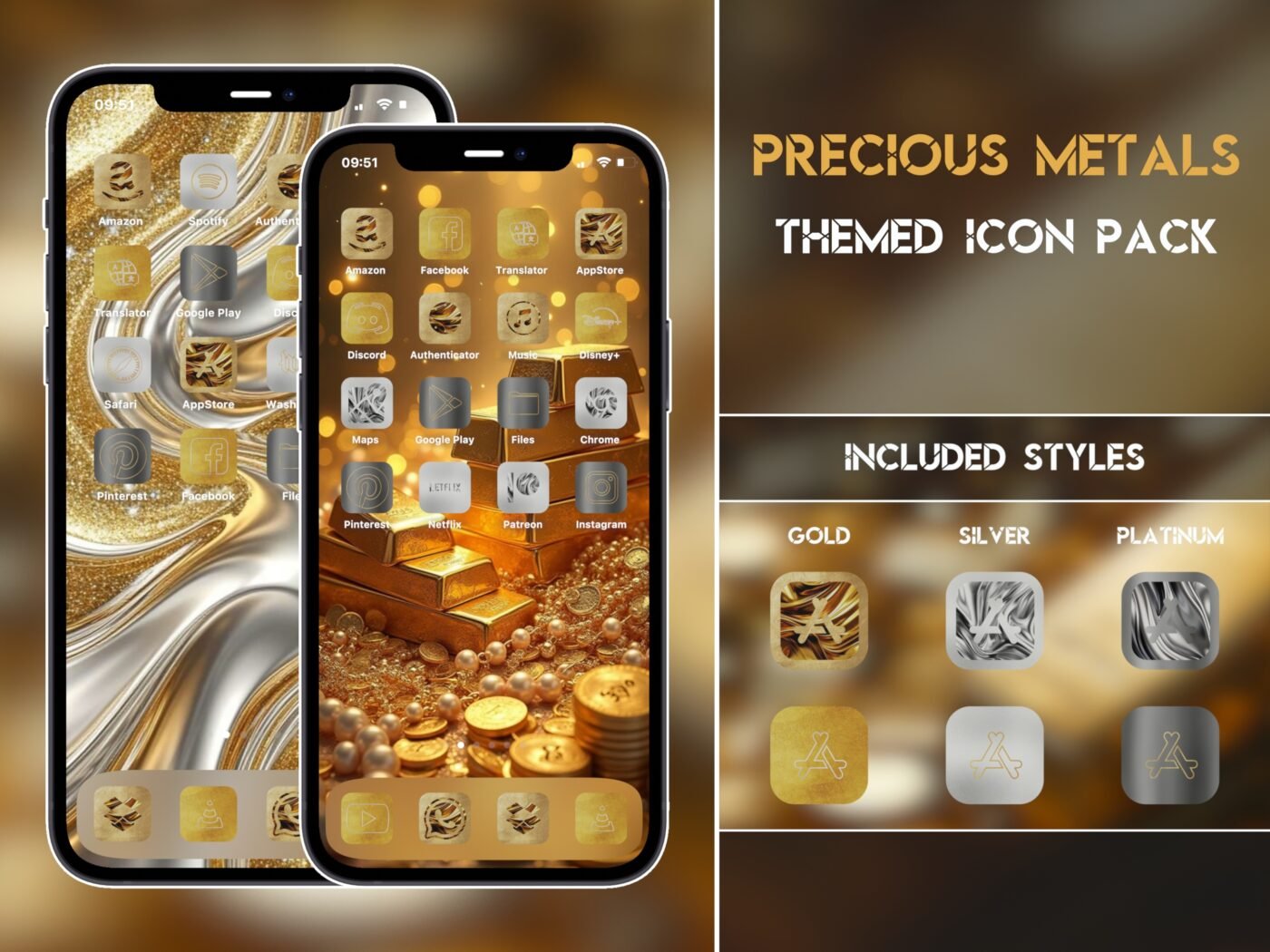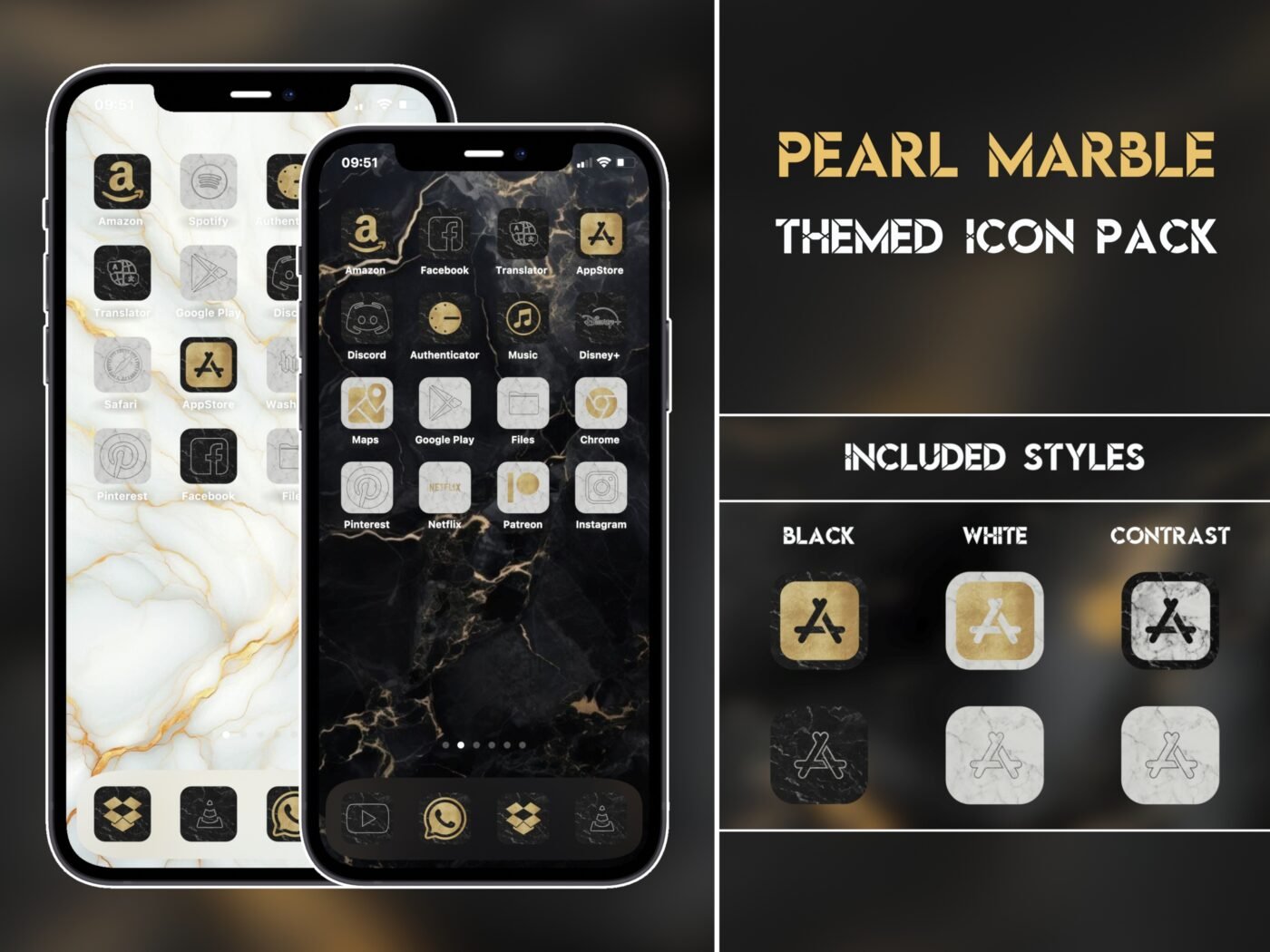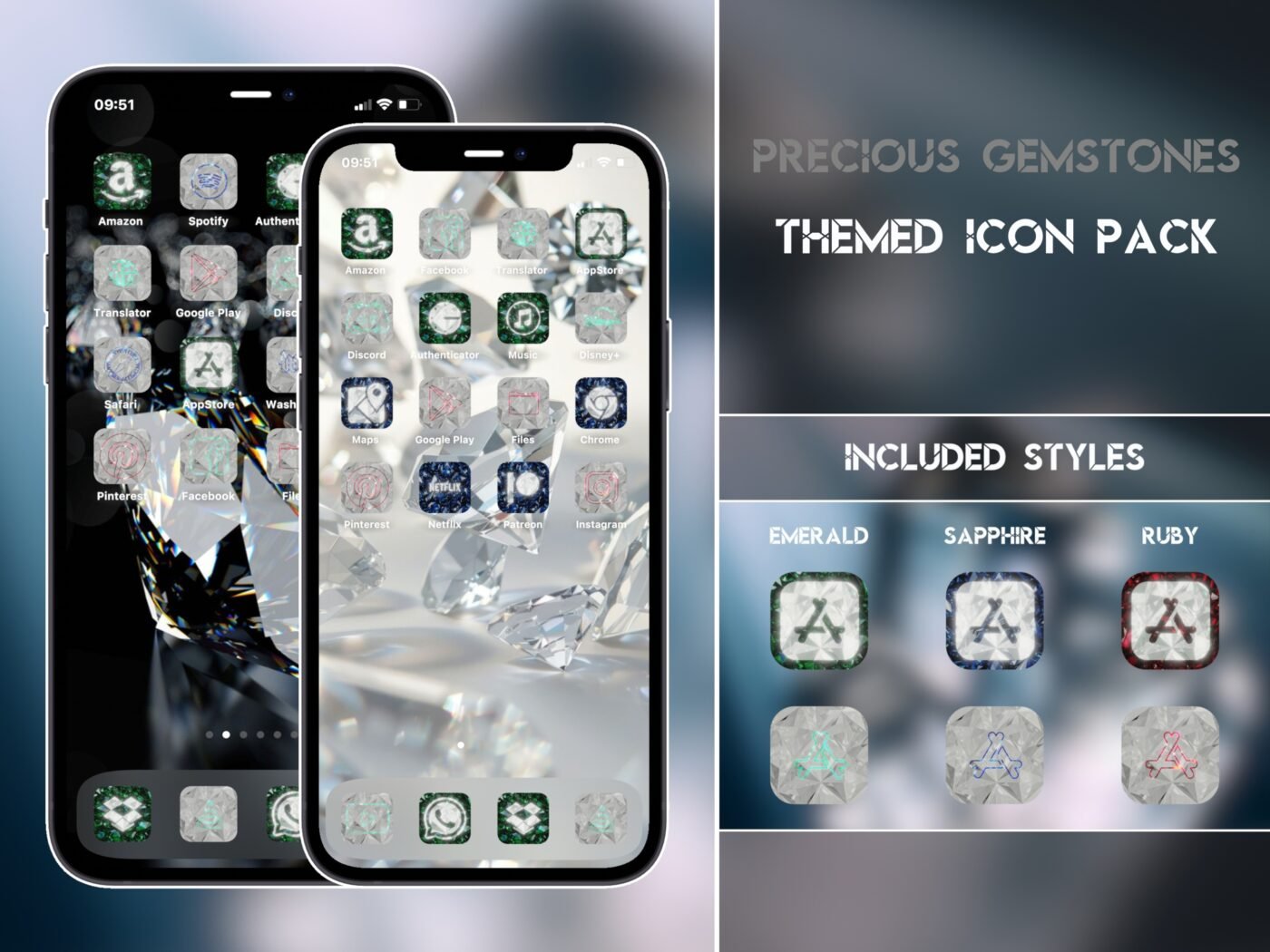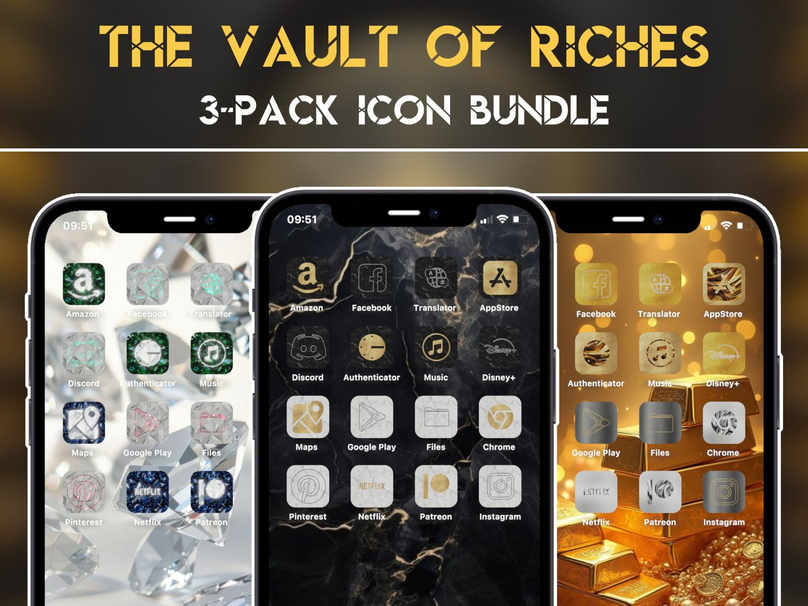 Hi there! This is an icon bundle for iPhone and iPad that includes three packs: The Pearl Marble, The Precious Gemstones and The Precious Metals Themed Icon Pack. When you purchase this bundle, you get three icon packs for the price of two. Each pack contains almost 6,000 icons in total across three unique styles!